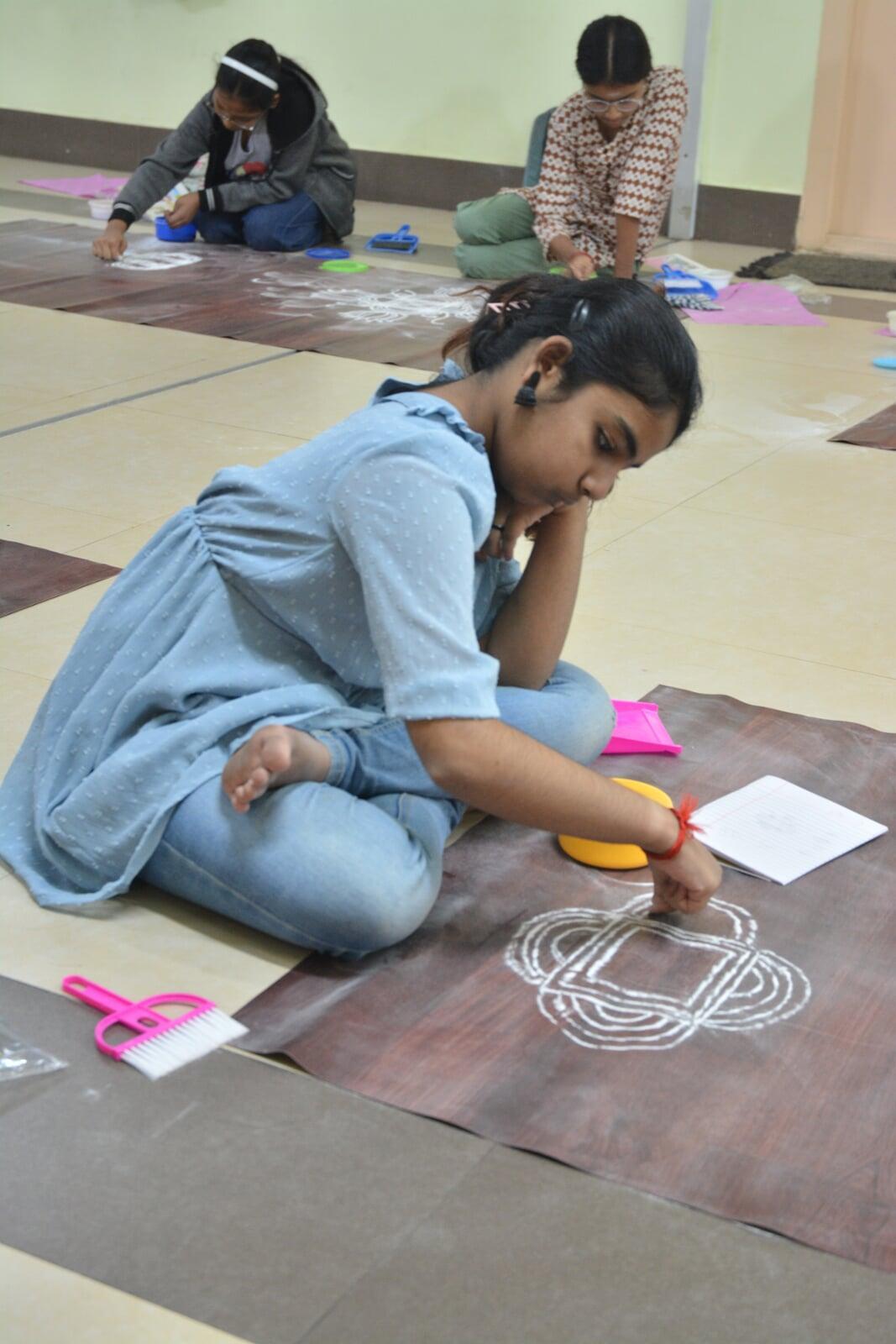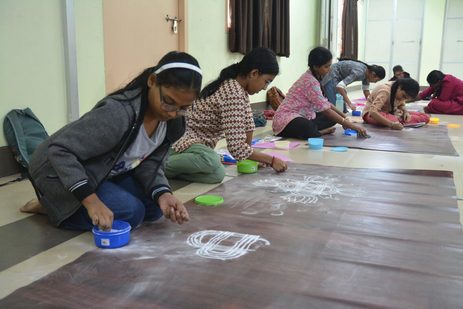 - Kolam, the traditional South Indian art of drawing intricate patterns with rice flour or chalk powder, is not only visually delightful but also a practice that nurtures patience, focus, and creativity. Through this workshop, children will